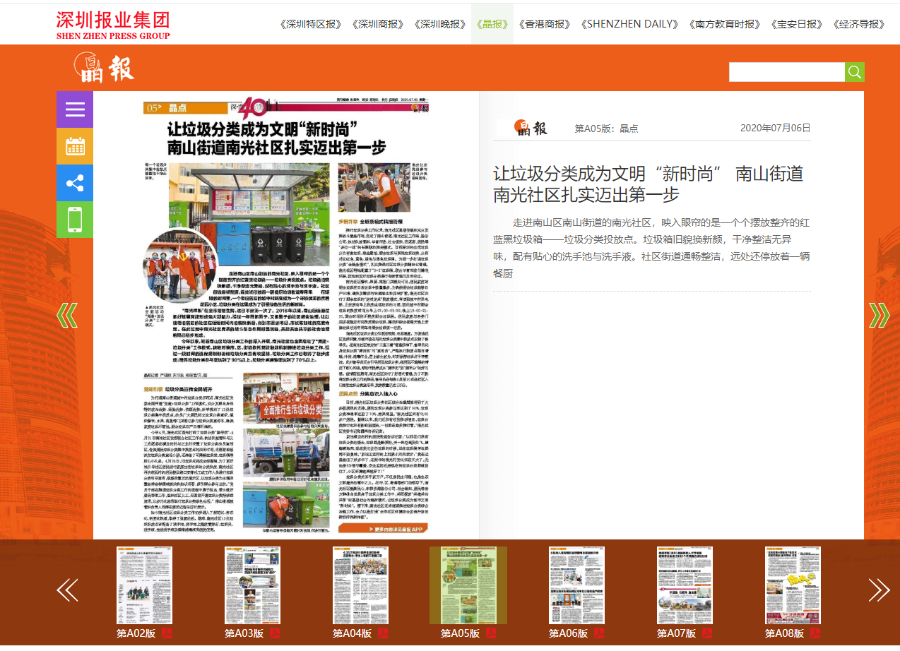 深圳晶报相关报道——华富环境南光村垃圾分类督导服务项目。